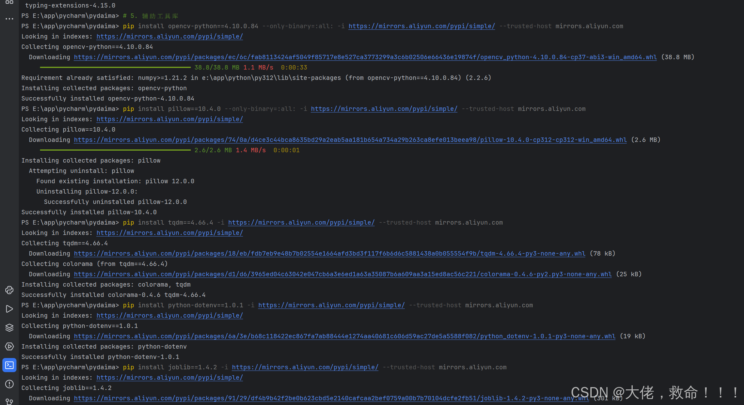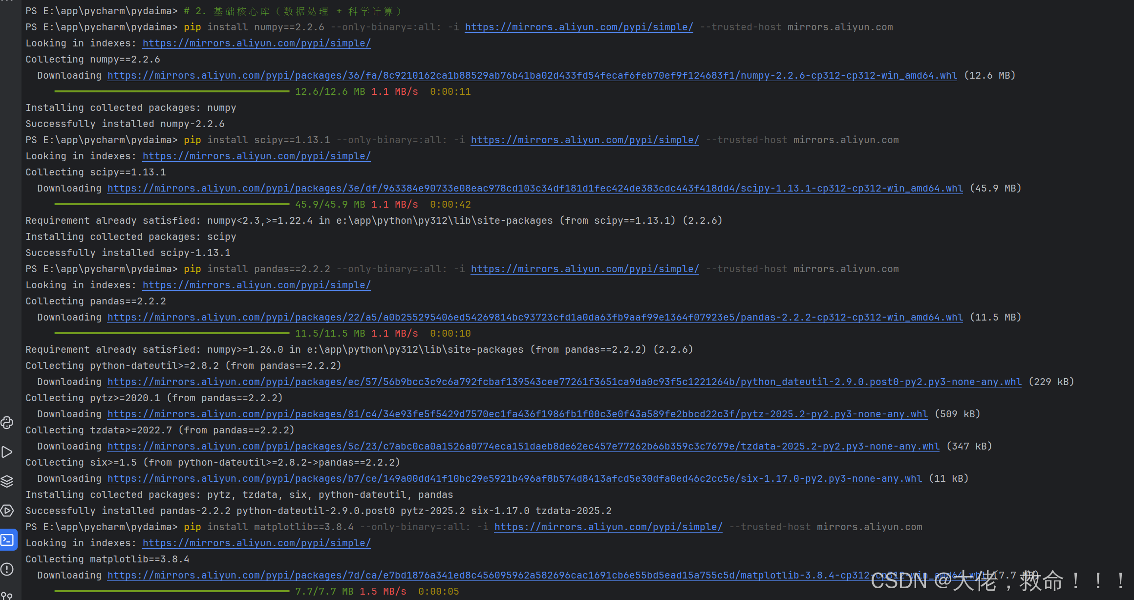 后续安装新库时,仍可使用阿里云镜像源,命令格式: