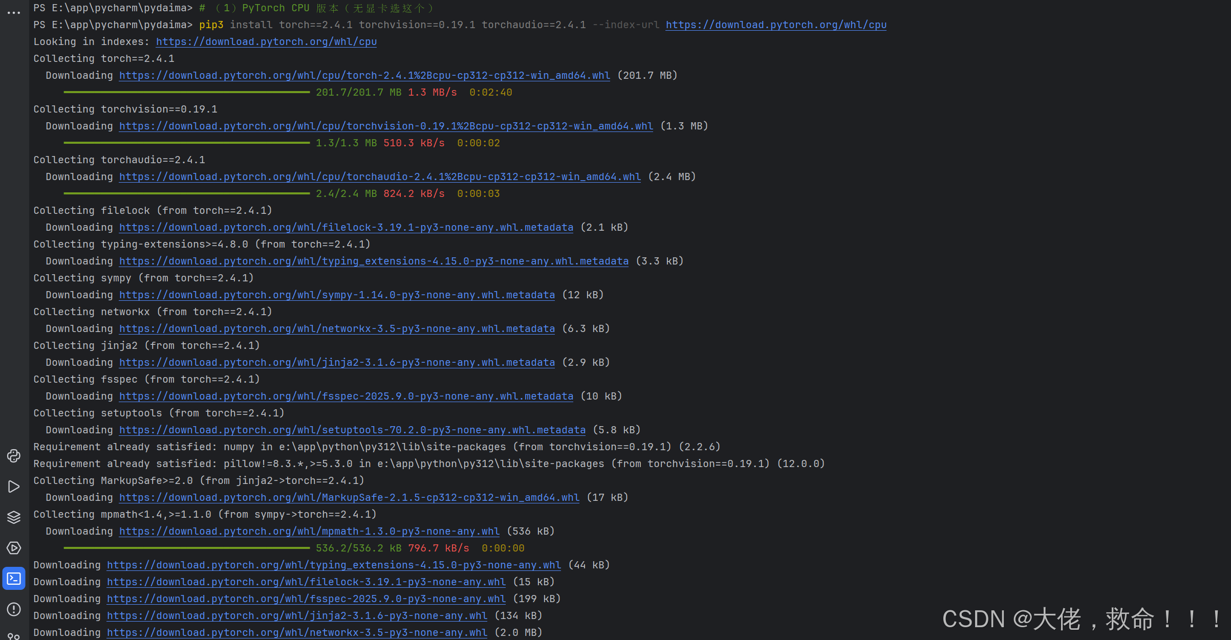 # (1)PyTorch CPU 版本(无显卡选这个)