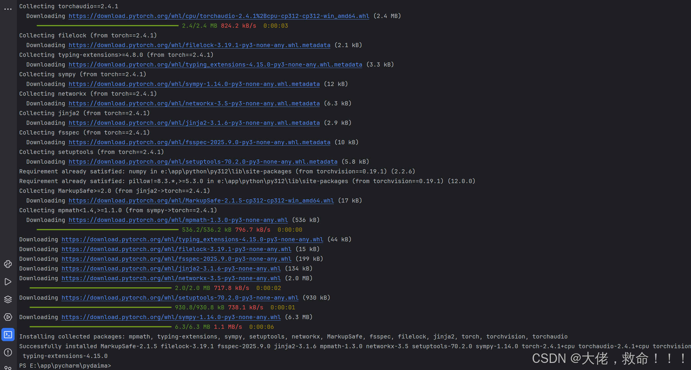 pip3 install torch==2.4.1 torchvision==0.19.1 torchaudio==2.4.1 --index-url https://download.pytorch.org/whl/cpu