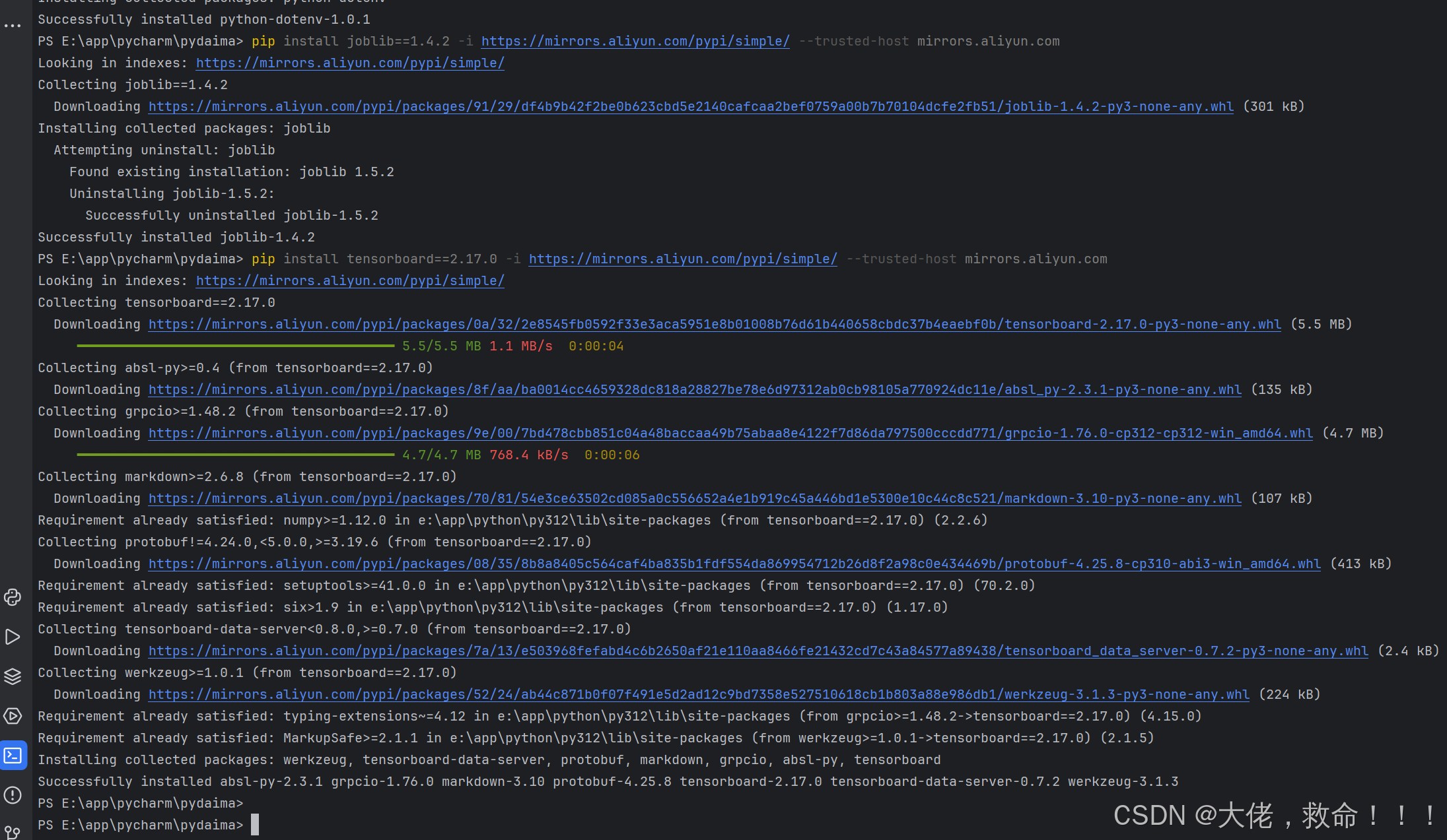 pip install tensorboard==2.17.0 -i https://mirrors.aliyun.com/pypi/simple/ --trusted-host mirrors.aliyun.com
