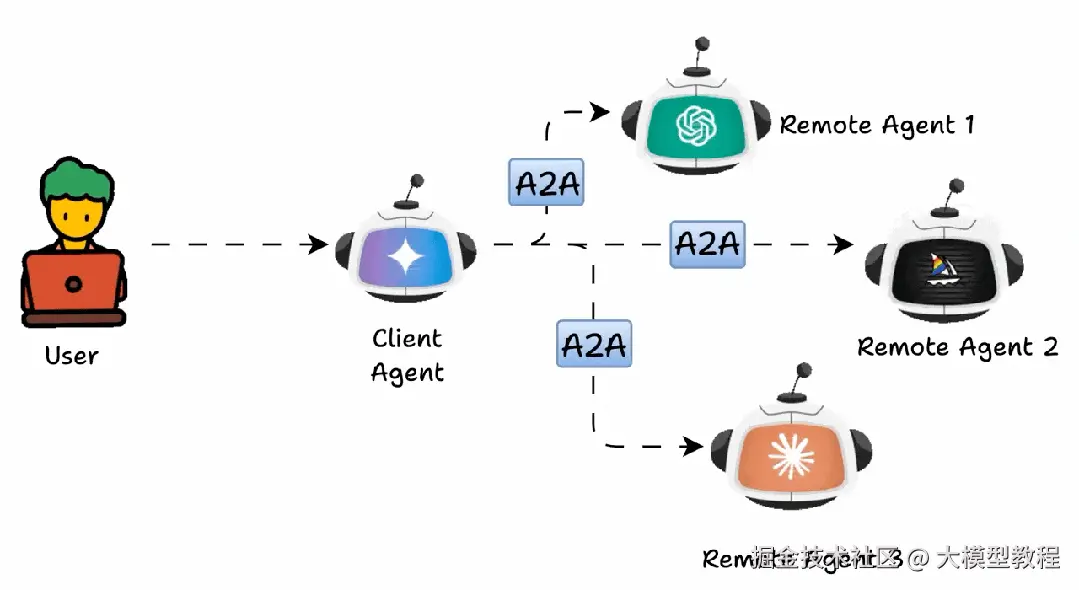 A2A 协议 是一套旨在标准化 AI Agent 之间通信的开放标准。如果说 HTTP 协议连接了互联网上的服务器,那么 A2A 协议就是连接不同 AI Agent 的通用语言。