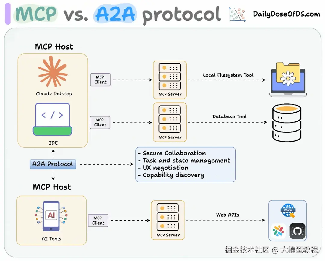 本文将借助一些可视化动图解析 A2A 协议的技术细节,并深度剖析它与 MCP 的本质区别。