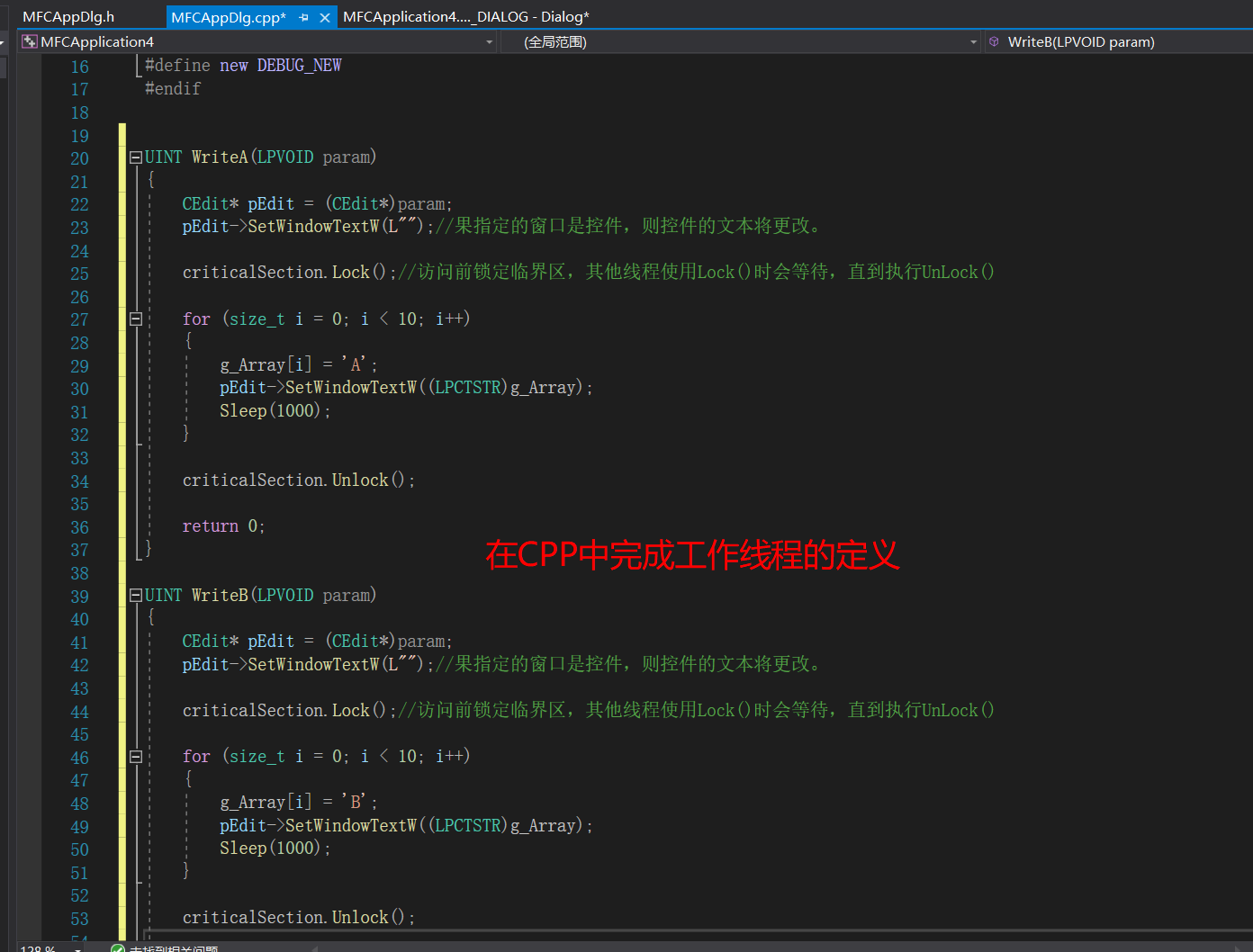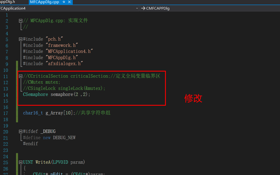 1)定义全局变量临界区。CCriticalSection criticalSection;//定义全局变量临界区