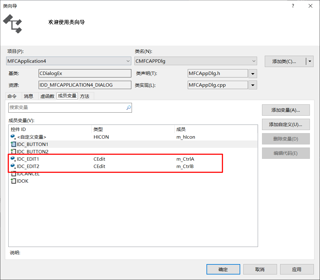 新建一个MFC对话框项目,添加按钮和编辑框