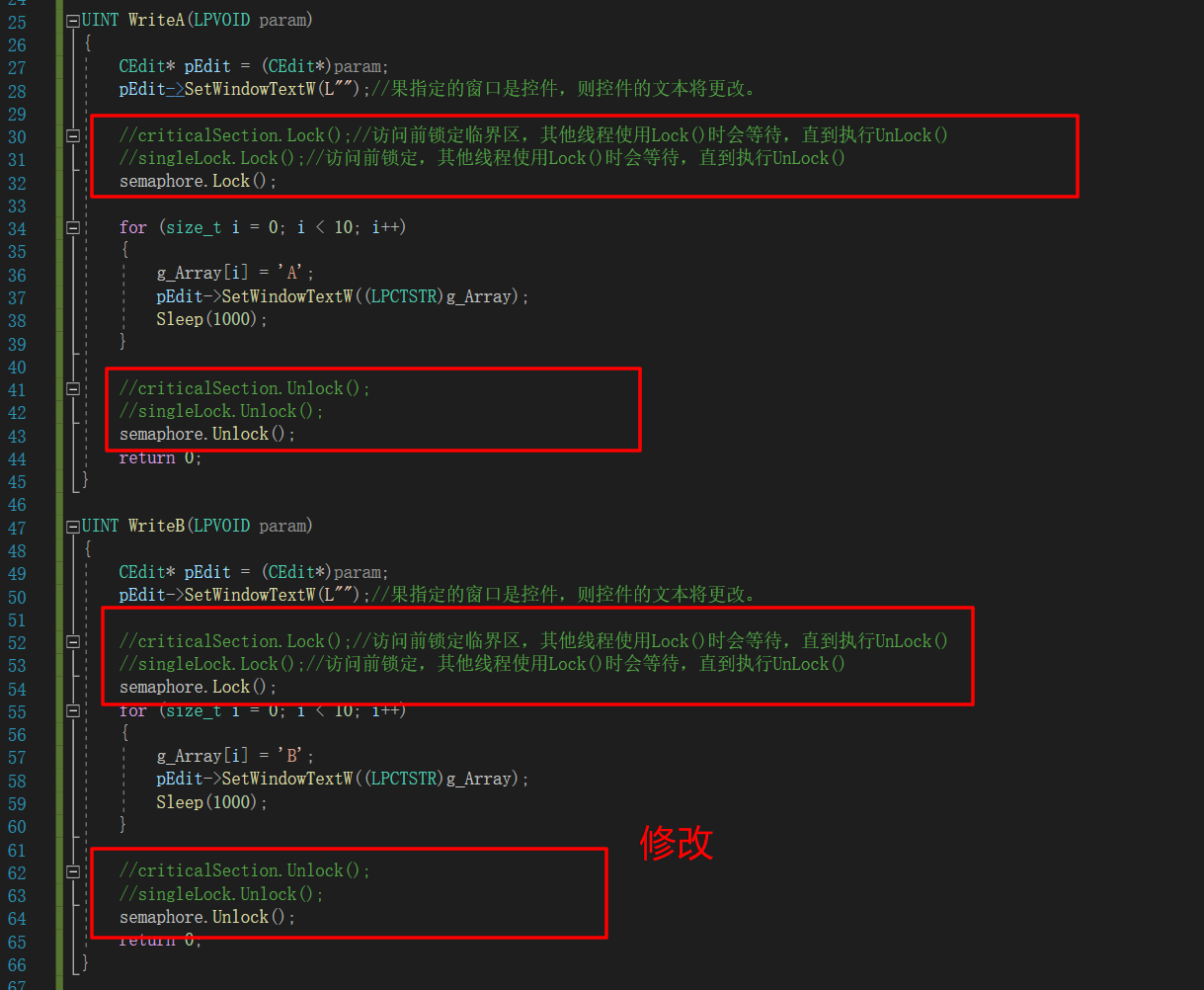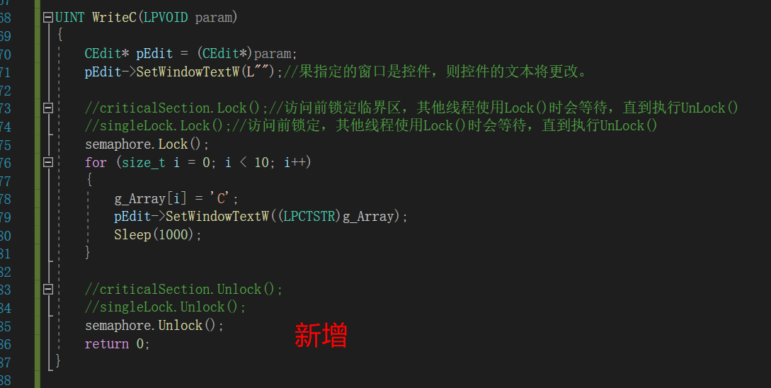 //criticalSection.Lock();//访问前锁定临界区,其他线程使用Lock()时会等待,直到执行UnLock()