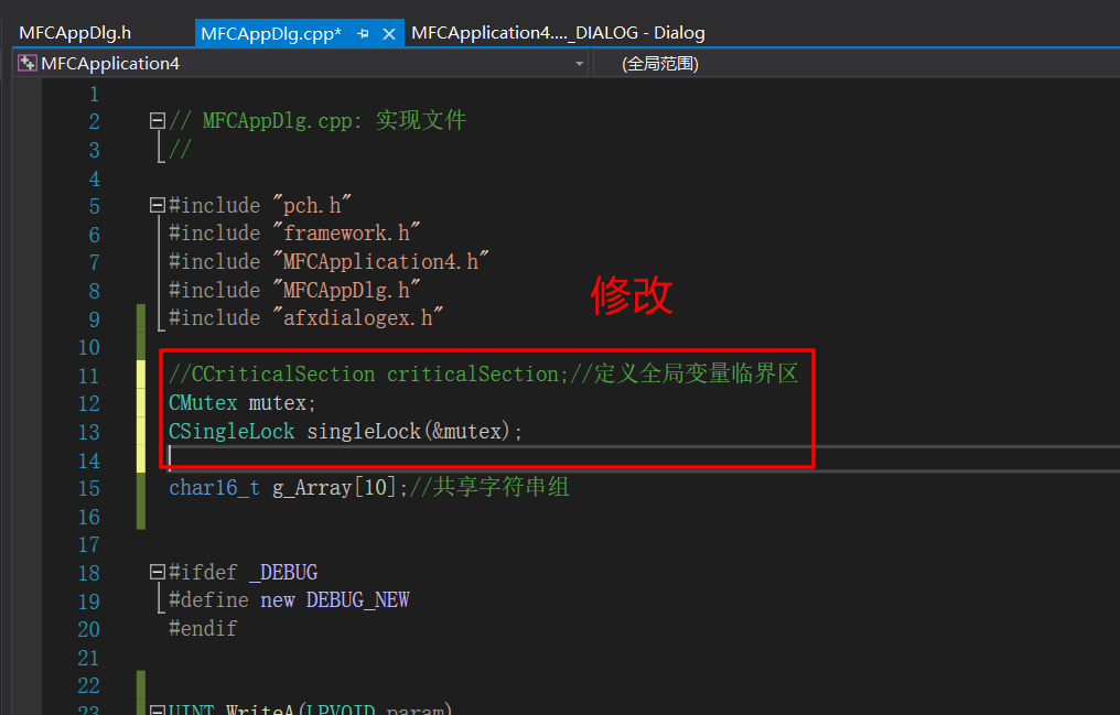 CCriticalSection criticalSection;//定义全局变量临界区