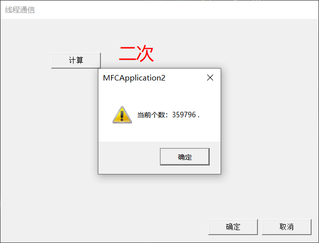AfxMessageBox(L"线程2的优先级提升1级", MB_OK);