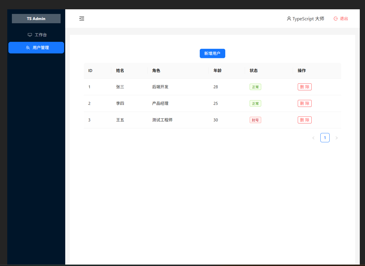 { id: 1, name: '张三', role: '后端开发', age: 28, status: 'active' },