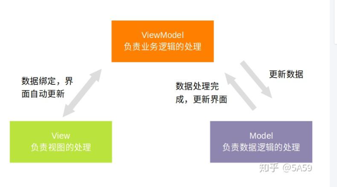 view产生了事件,自动更新给了viewModel,viewmodel进行逻辑处理之后,通知model数据加载或储存,然后把结果返回给viewmodel,viewmodel最后自动更新给了view;