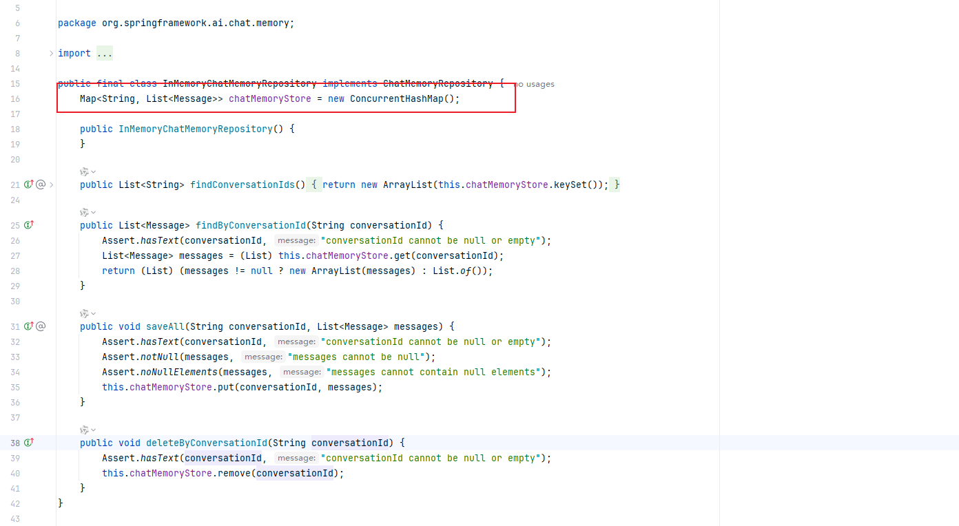 SpringAI针对会话内容存储做了封装其中关键组件: