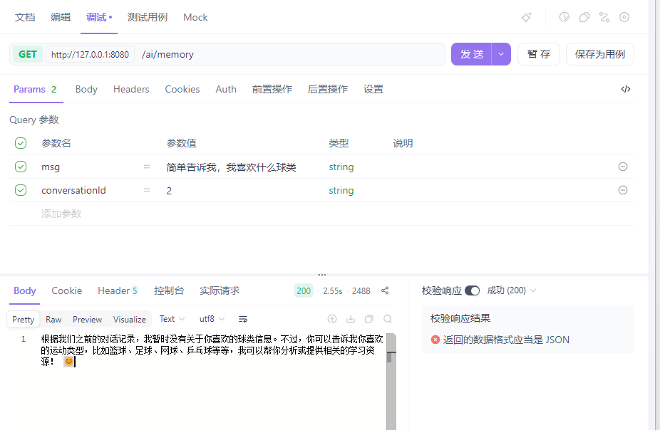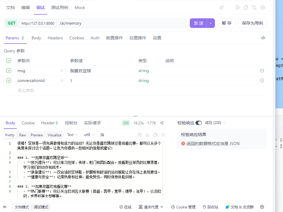 - MessageChatMemoryAdvisor:SpringAI拦截器,自动将历史对话附加到模型请求中,无需手动维护上下文数组。