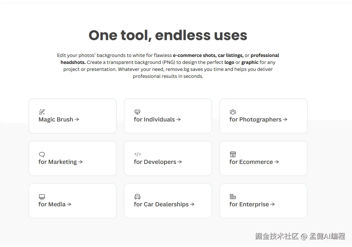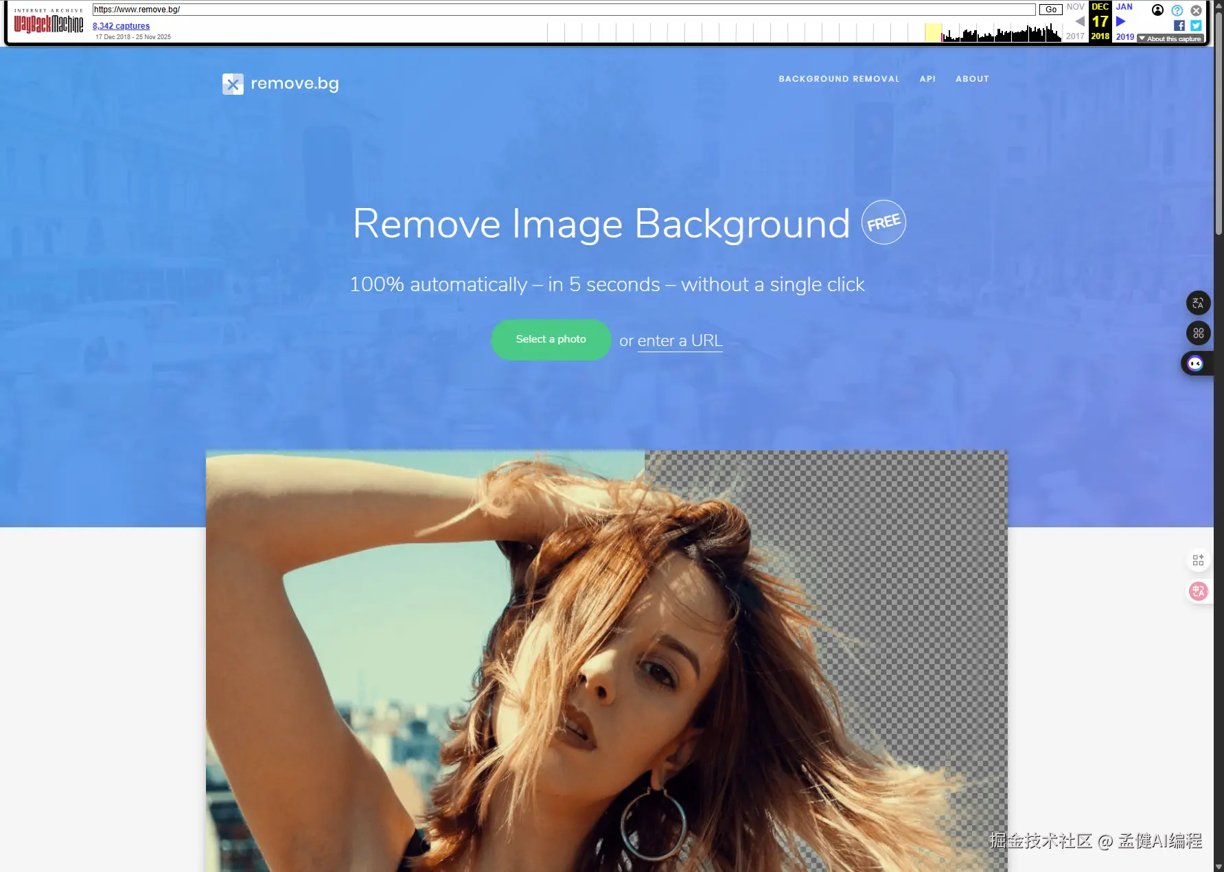 其实 18 年的时候,这个站点就在布局了,他们的第一个版本就是 remove bg,那个时候 AI 还没有火热: