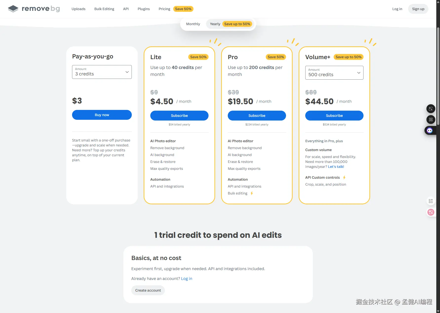 Lite 版本,$54/年,支持基本的编辑和 API 操作。40 积分/月。