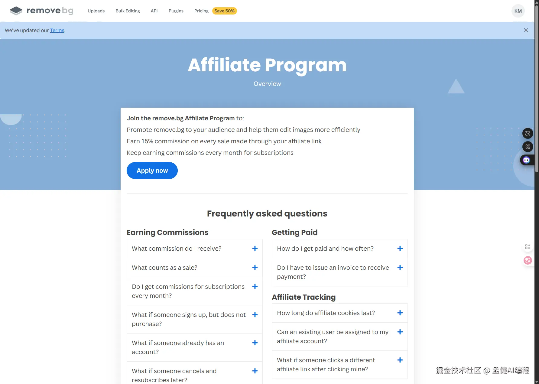remove.bg 就非常值得学习,直接做个 Affliate 页面,所有的规则都清楚了,可以吸引更多客户来对你的产品进行分销。