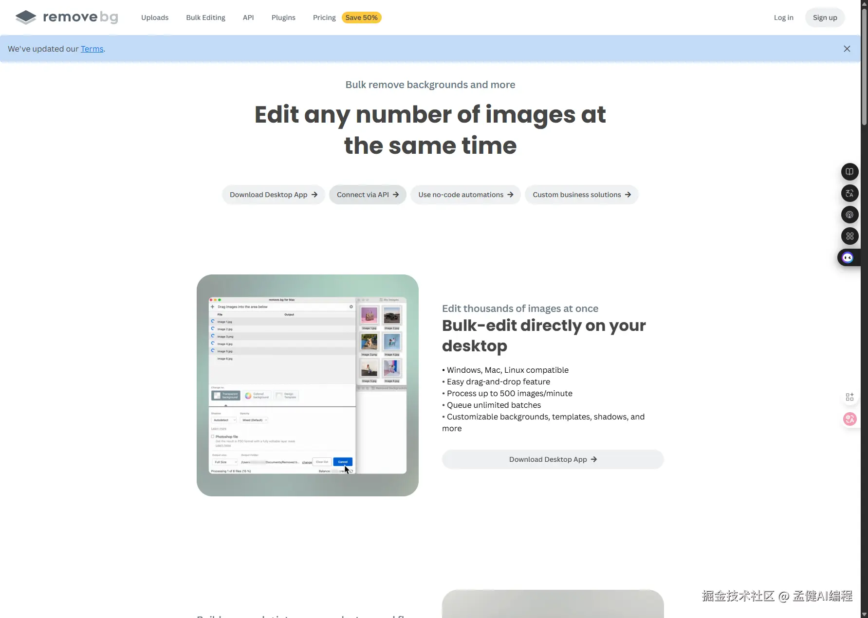 这个 bulk 页面,我觉得非常值得学习的点就是,它通过首屏的动图,让你立即能理解这个功能带来的附加价值,我觉得这个页面的 CTR 会非常不错,非常清晰易懂。