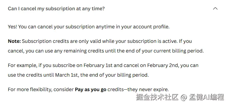 另外,它还附加说明了,订阅送的积分,只在订阅期间有效,而一次购买的积分,永久有效。