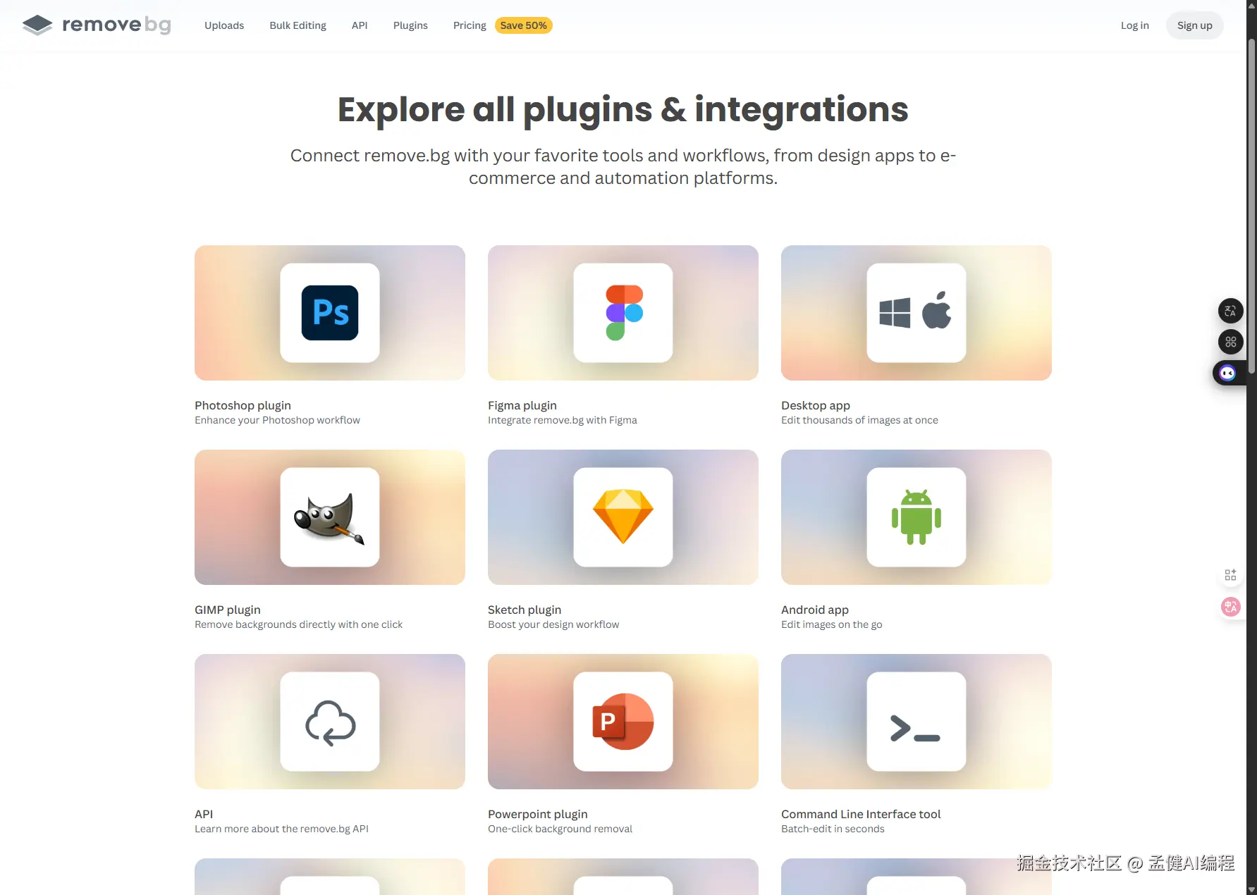 plugin 页面就是在展示大厂实力了,这也是护城河。尽管是一个去除背景的小需求,它能做各种插件、APP,与这么多效率工具打通,如果我们以个人力量去和他竞争,那无异于以卵击石。