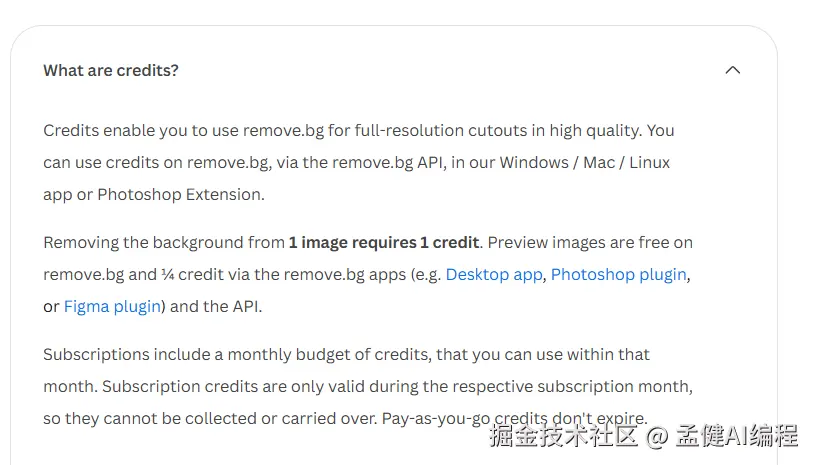 比如,一个积分是什么概念,在 remove.bg 的定义里,1 个积分可以处理一张图片,这就定义清楚了积分的价值。