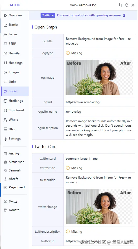 OpenGraph 我们会经常忽略,但在 Twitter 这样的媒体平台传播是一个非常关键的因素。