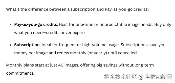 它还解释了什么场景适合单买积分,什么场景适合订阅,降低用户心智,实际上这针对的是不同的用户群体。
