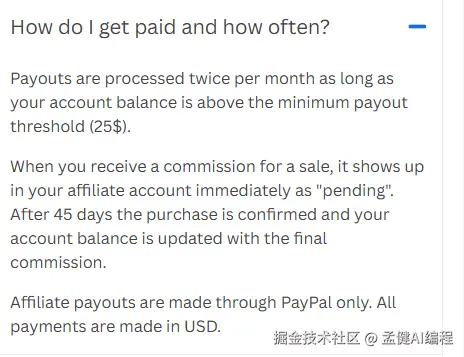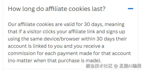 你可以看到这里明确写了 Affliate 是 15%的收益,并且有很多 Affliate 相关的 faq,都非常专业,值得学习。