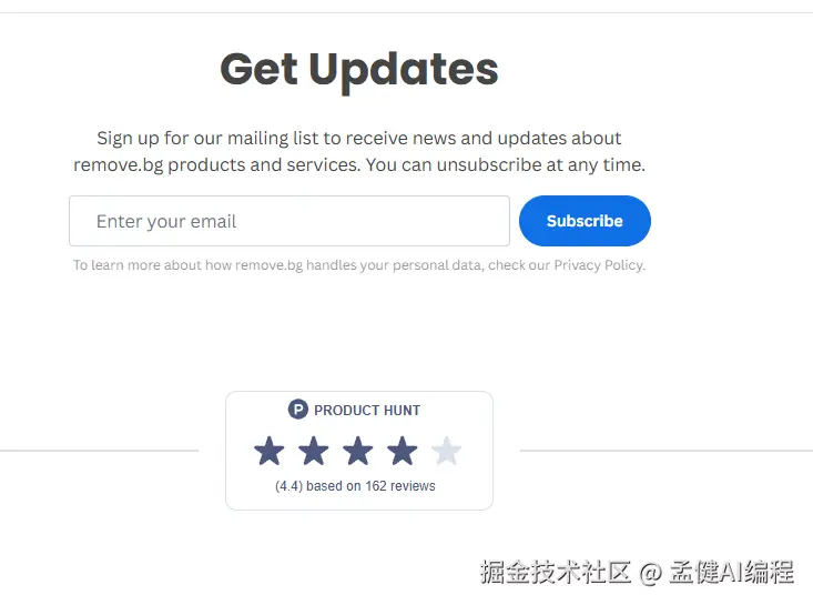 它的博客下方有 newsletter 的订阅,和 ProductHunt 的小组件,这个我觉得也是值得学习的点。我们真正做一个长期的产品,一定要做 EDM,一定要抓住任何可以提留存的机会。