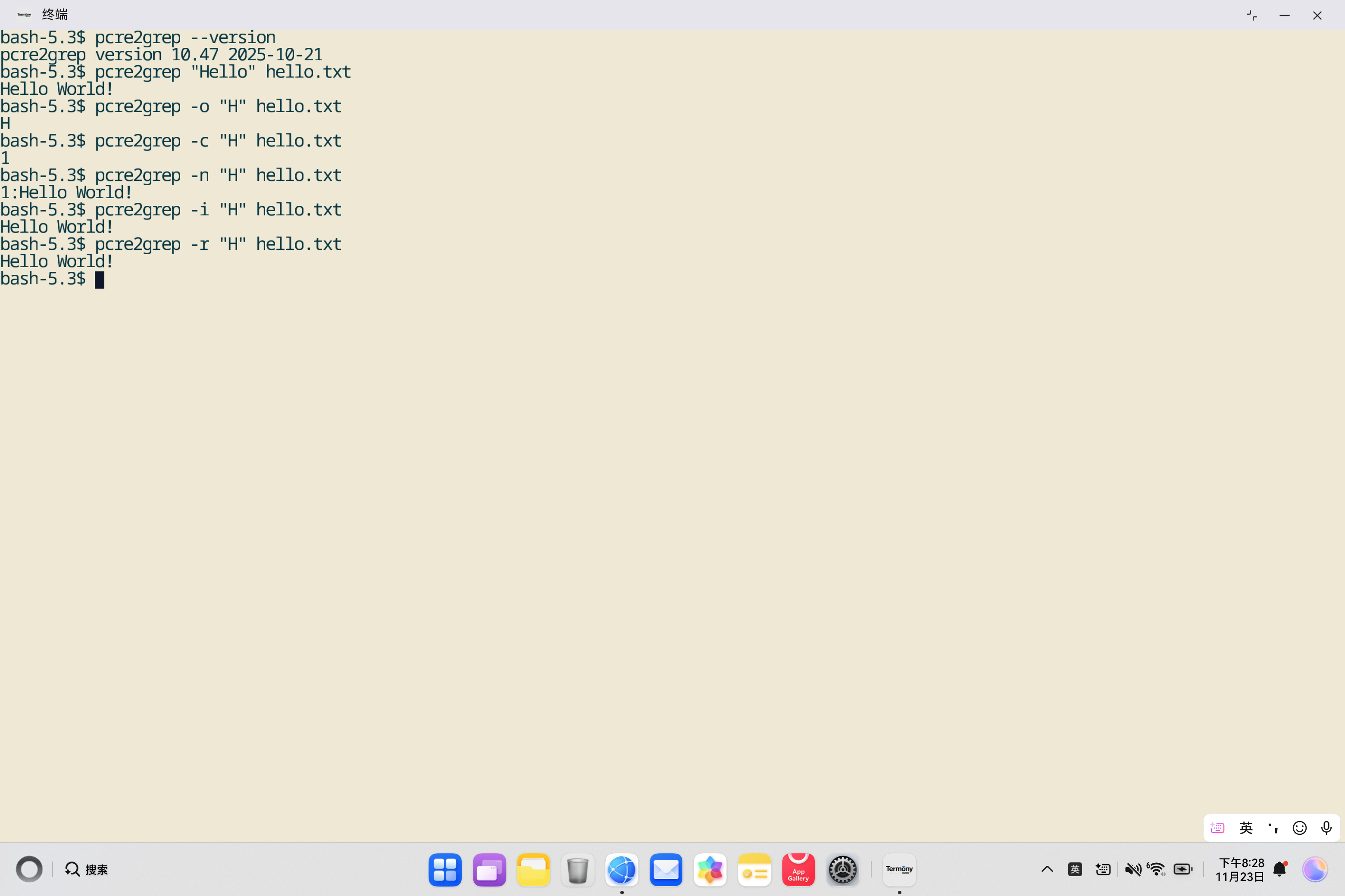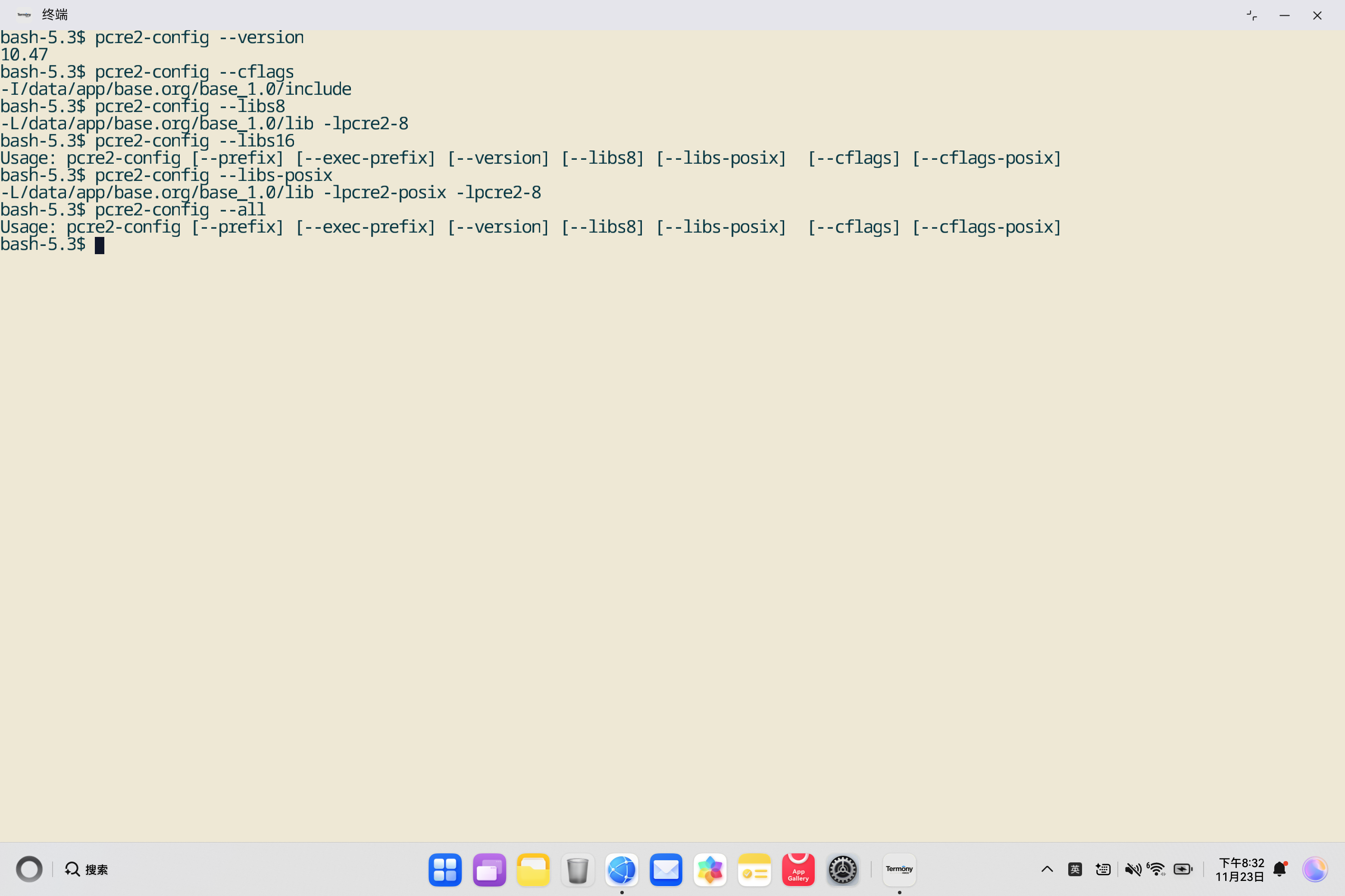 - ✅ 本次已在 aarch64 环境下完成 PCRE2 10.47 的交叉编译与打包,pcre2 命令行工具和库已安装到