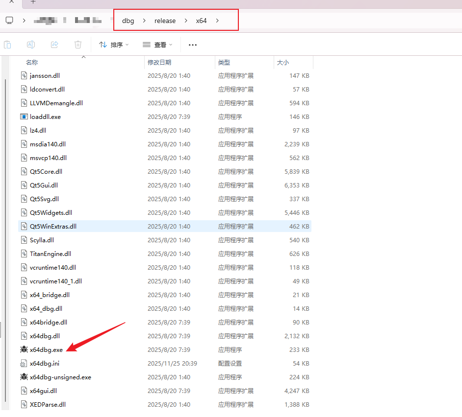 首先启动dbg软件,这里由于我的exe是一个x64的软件,所以我也需要打开x64的dbg。