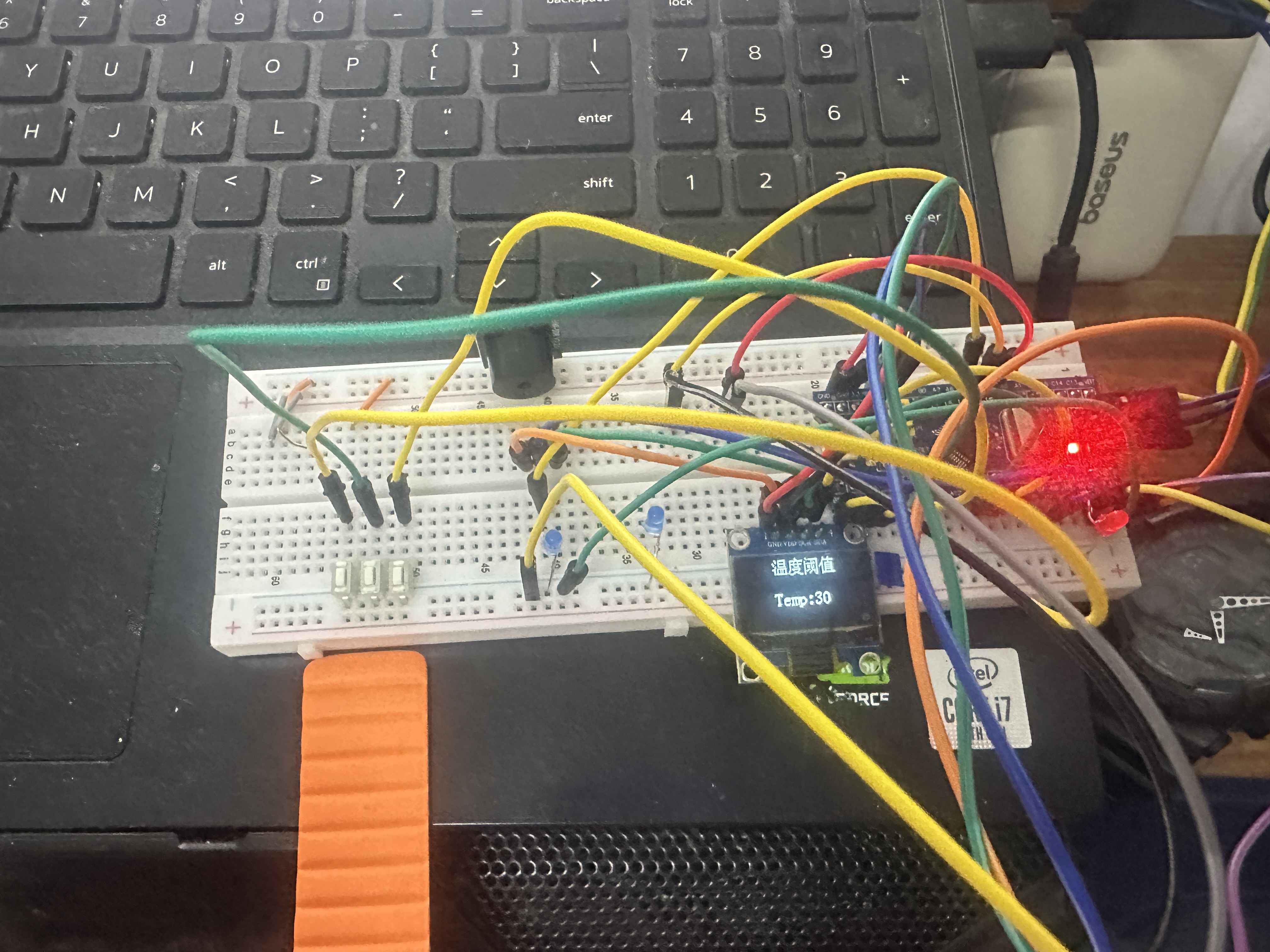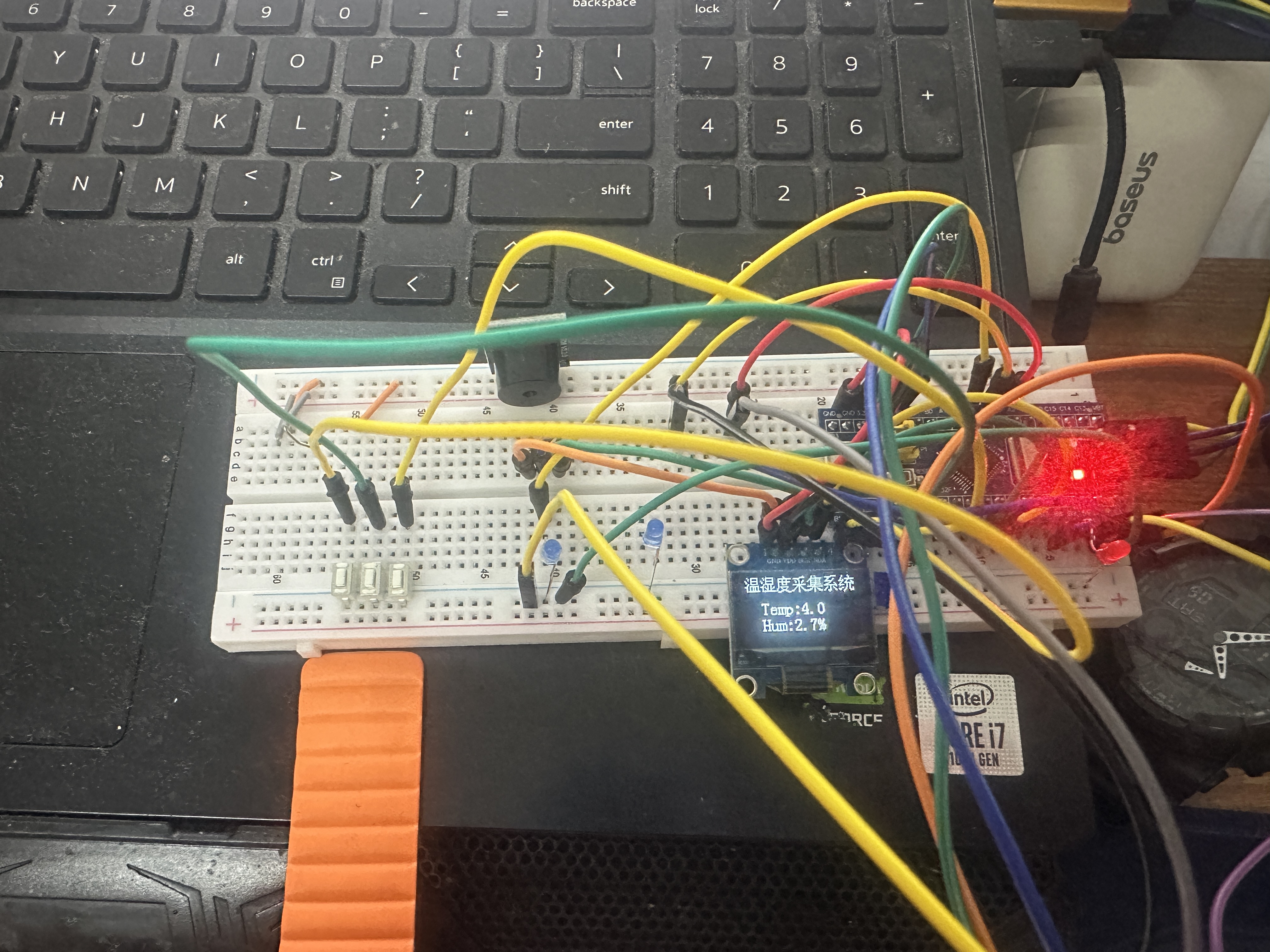 系统工作原理基于 "采集 - 判断 - 报警" 的闭环逻辑:STM32 通过温湿度传感器实时获取环境参数,经数据处理后与预设阈值比对;若参数超标,驱动报警装置工作并记录报警事件;实时数据与报警状态通过显示屏同步展示,用户可通过按键交互修改阈值或查看历史数据。STM32 的高效处理能力确保数据采集的连续性与报警的及时性,传感器的高精度特性保障监测数据的可靠性。