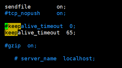 keepalive_timeout 65 180; # 保持连接的超时时间,空闲连接65秒后关闭,建议客户端超时180秒