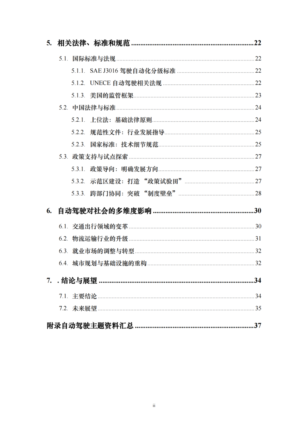 本报告对自动驾驶技术进行了全面、系统的综述,涵盖了自动驾驶的核心定义与分级、技术架构与核心模块、主流技术路线与差异、产业链与商业化场景、相关法律标准和规范、核心挑战与瓶颈、发展趋势与展望、典型企业案例以及对社会的多维度影响等方面。通过分析研究,得出以下主要结论: