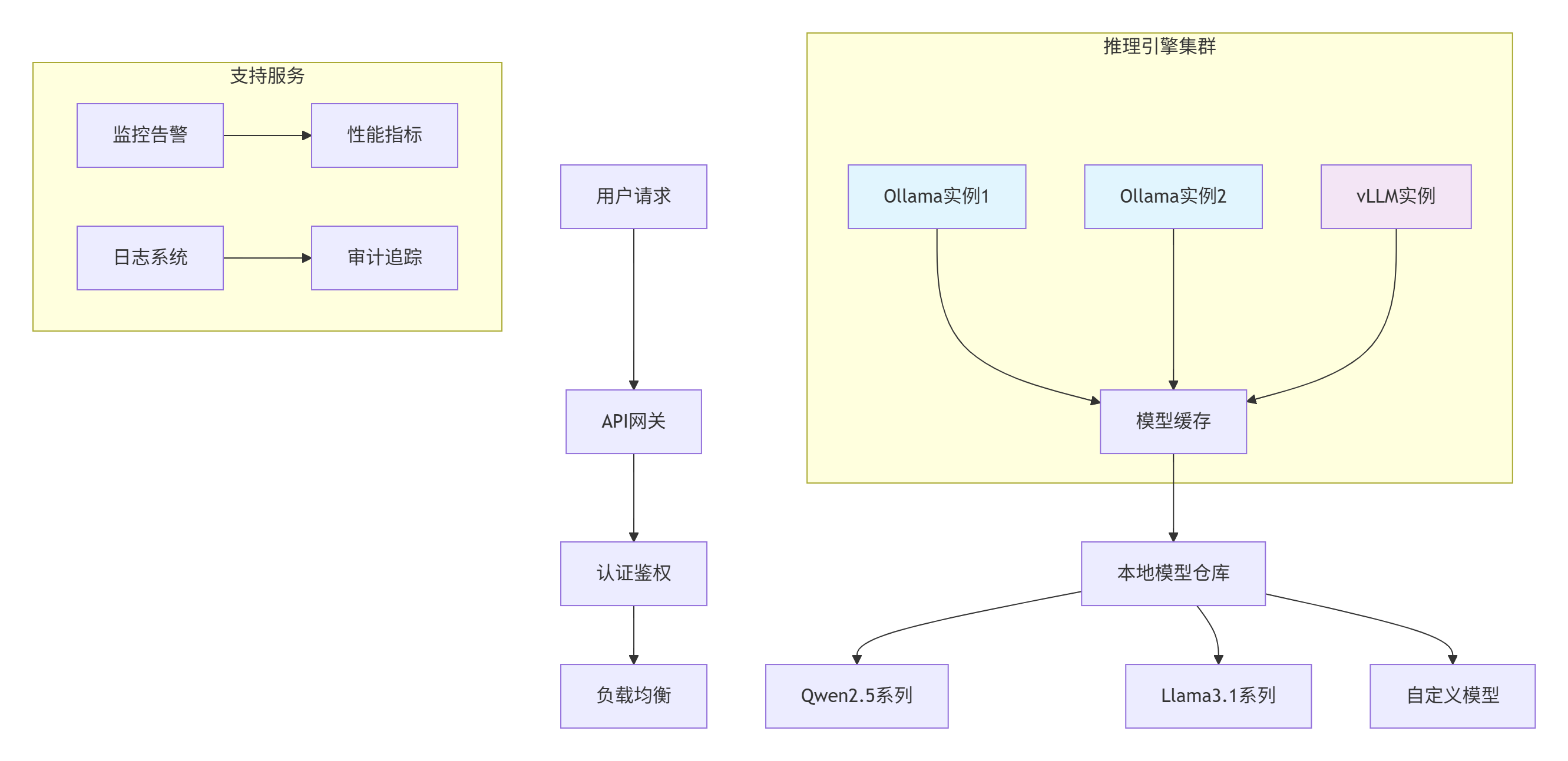 这种架构的优势在于组件解耦 和弹性扩展。推理引擎可根据工作负载动态伸缩,模型缓存减少重复加载时间,支持服务保障系统可靠性。实际生产环境中,此种架构可支持最高1000+ QPS的推理请求。