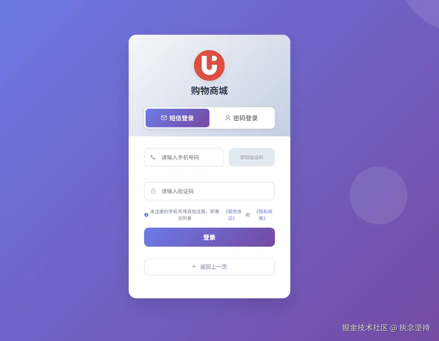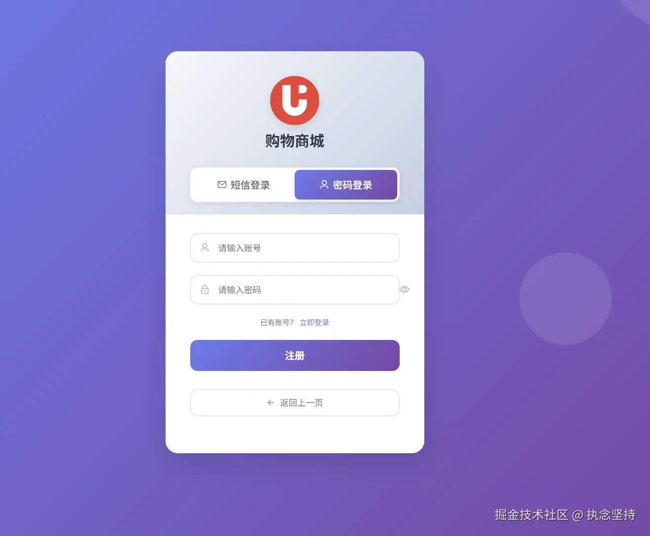 - 登录注册页面