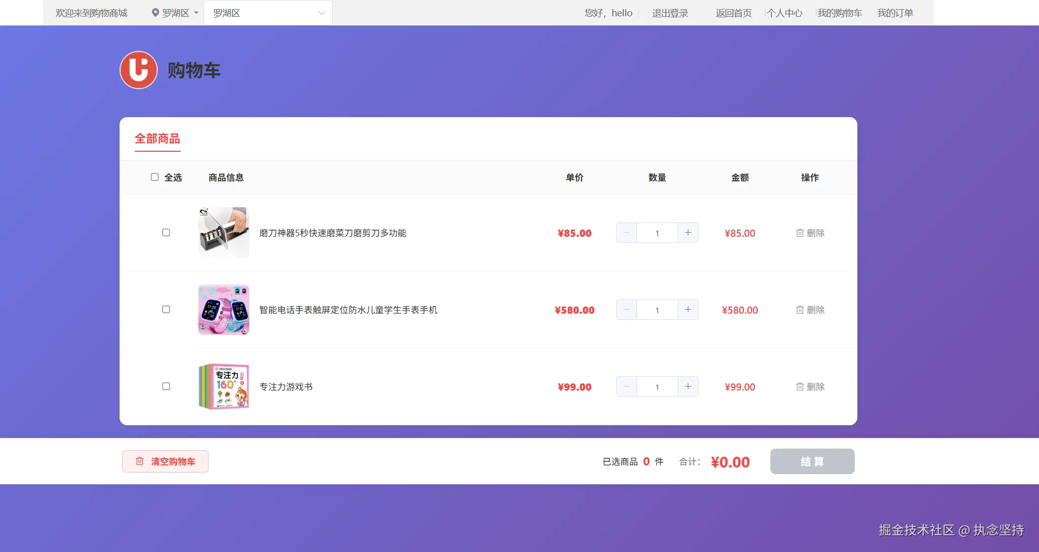 - 清空购物车