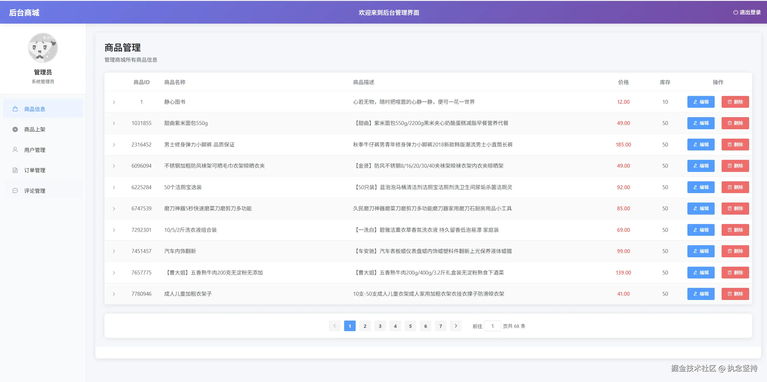 - 商品的增删改查