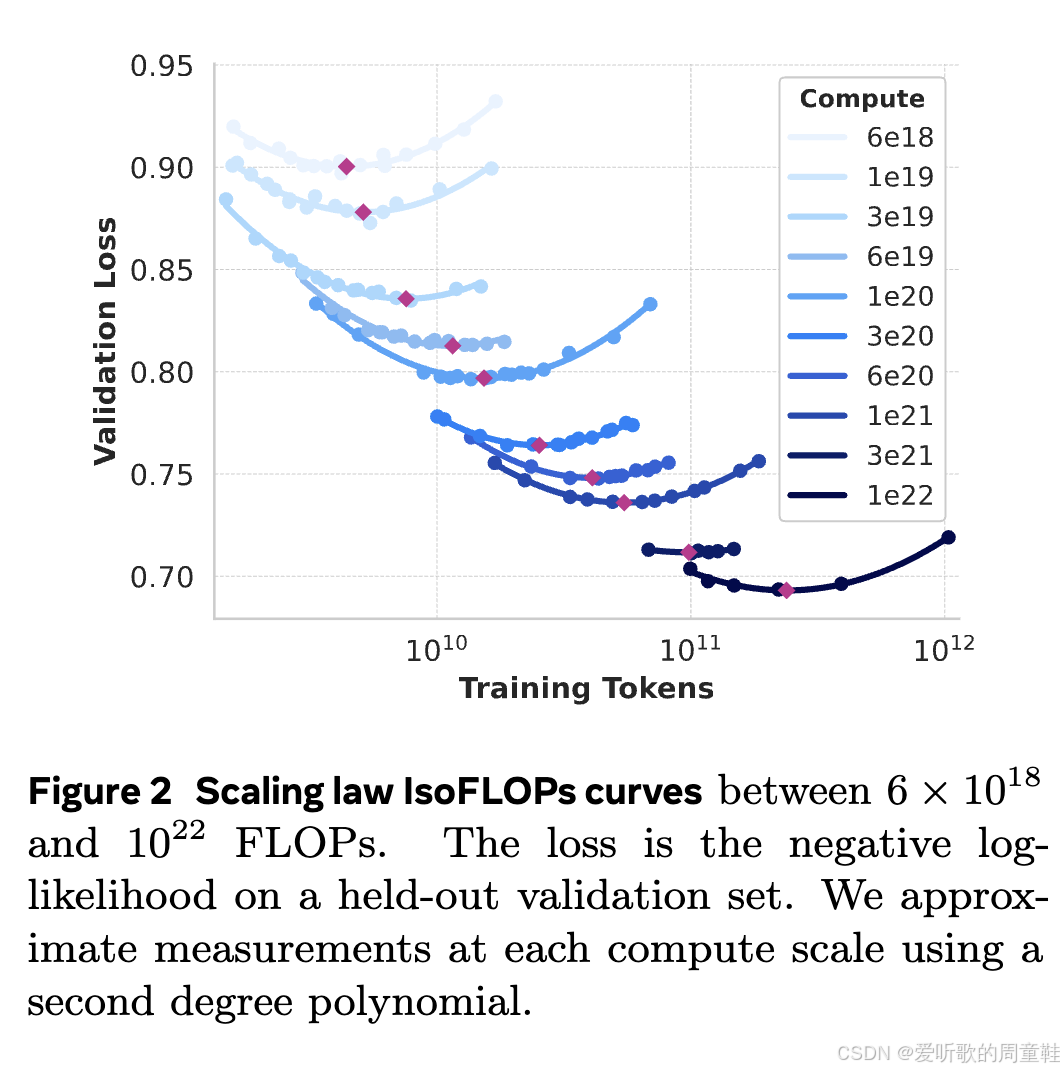 最后需要考虑的是模型规模与训练数据量的最佳配比关系,训练小型模型时,很可能会出现训练过度的情况,开发者甚至需要明确使用海量训练数据的合理性,此时可以参考 Chinchilla 论文的分析方法进行验证