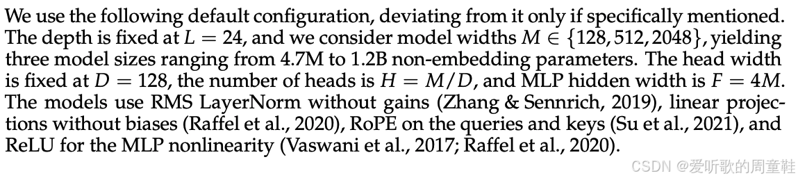 架构设计大体遵循标准 Transformer 的范式,正如我们之前提到的,这些研究仅考虑了宽度维度的缩放,他们采用了一个标准的自回归预训练文本 Transformer 模型,他们的核心目标是将模型不断向更宽的方向扩展,针对 MLP 层和模型整体,他们会将残差流维度不断放大,他们的目标是当模型宽度不断扩展时,最优学习率能保持稳定不变