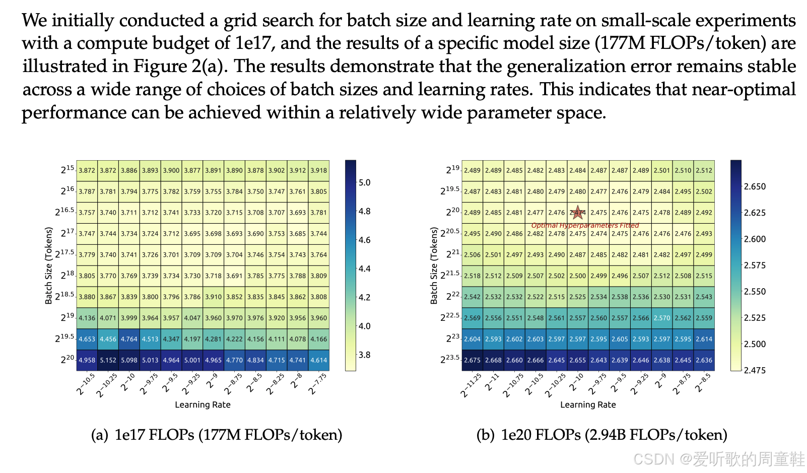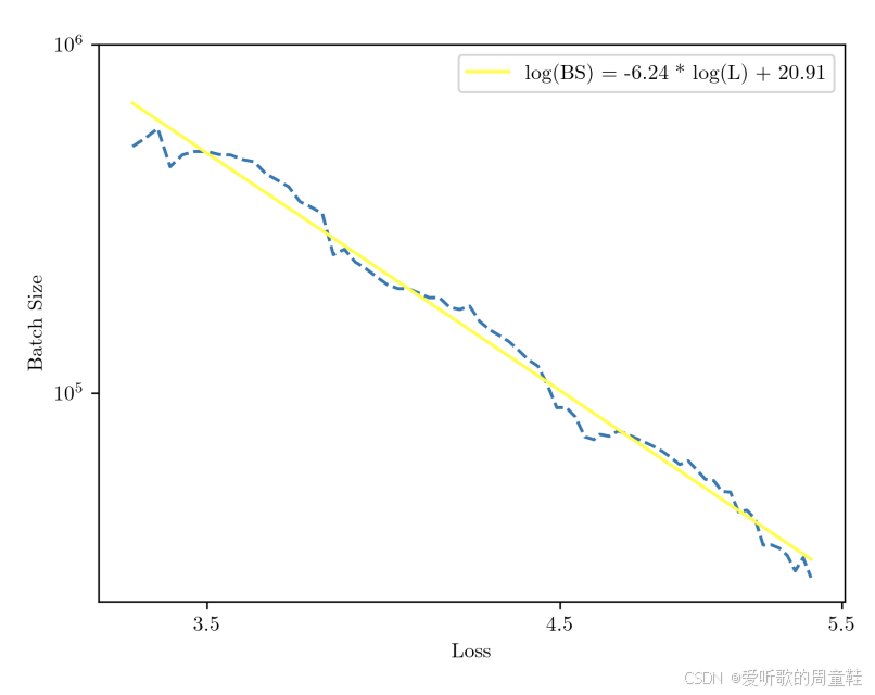 正如 Kaplan 研究中所示,我们再次观察到目标损失与理想 batch size 之间呈现对数线性关系,由此便可推算出应采用的 batch size 。只需确定目标计算量级,就能通过缩放定律预估预期能达到的损失值,一旦确定了预期损失值即可反向推导出可操作的 batch size,这里存在一个清晰的趋势:随着损失值降低,batch size 呈多项式增长