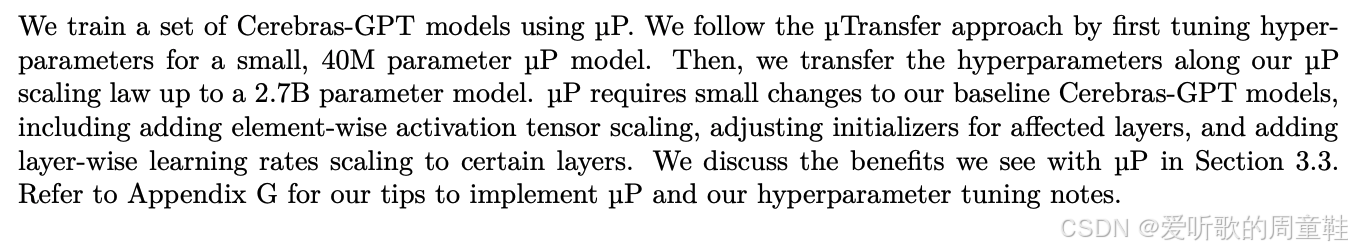 这是一个庞大的模型家族,该系列模型参数覆盖 1 亿至 130 亿区间,严格遵循 Chinchilla 训练方案,使训练 token 数量与参数规模保持最优比例关系,研究人员在其中发现了一个关键洞见,Cerebras 团队对这些缩放定律和参数化研究展现出浓厚兴趣,它们取得了一项极具价值的核心发现:通过扩展我们之前提到的最大更新参数化( μ P \mu P μP)方法显著提升了模型扩展的稳定性和可控性