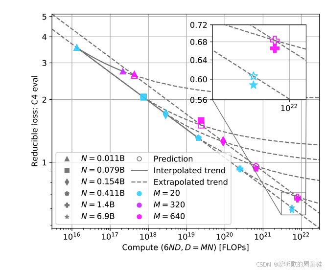 事实上,我们在多篇论文中反复观察到对 Chinchilla 模型的复现研究,因为许多研究者都迫切希望探究 token 量与参数规模的配比极限,我们更倾向于保持较高的数据参数比---让训练数据量远超参数量,这样既能确保模型的实际应用价值,又能显著降低推理成本,正因如此,业界才会不断复现 Chinchilla 的研究范式