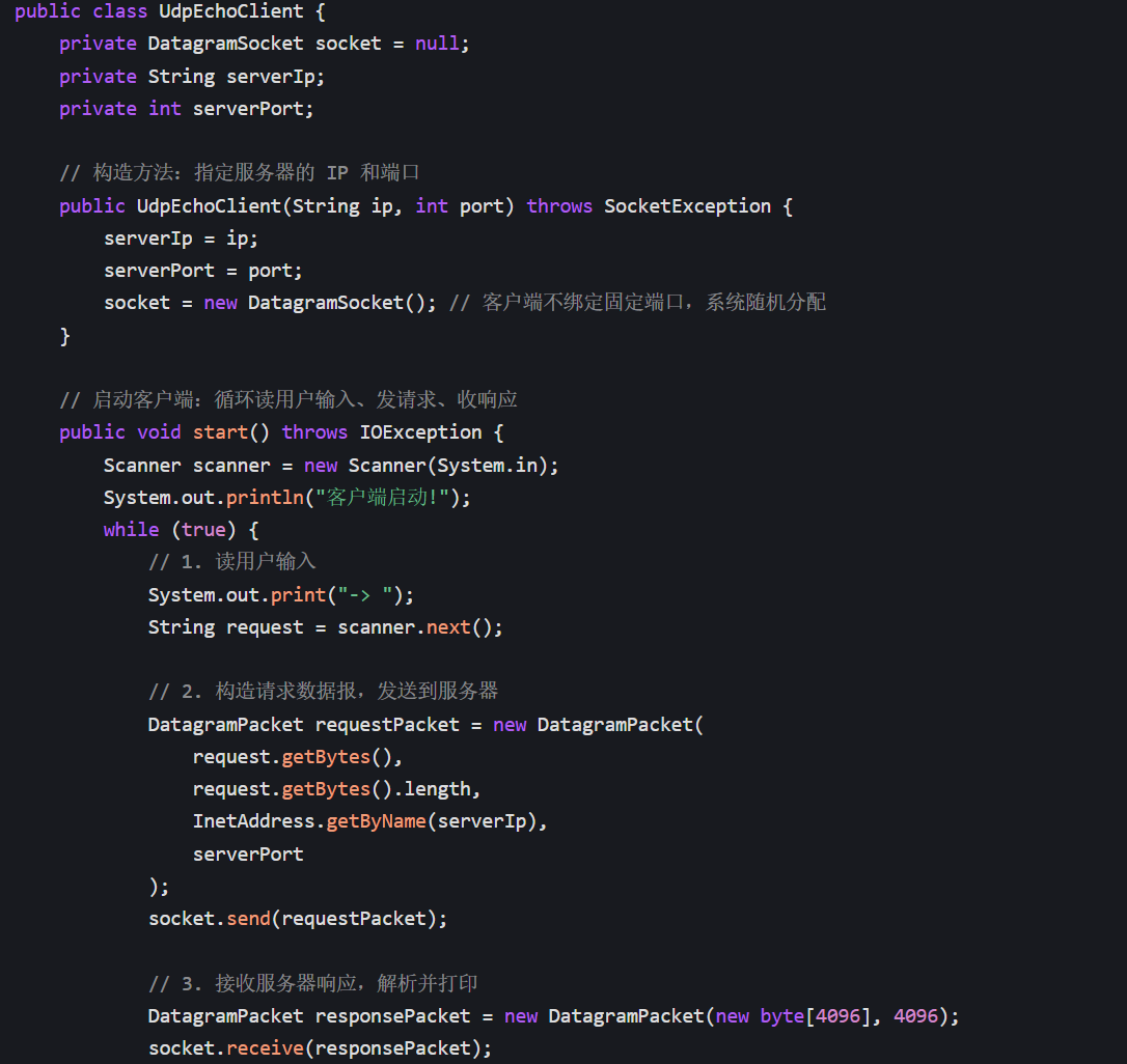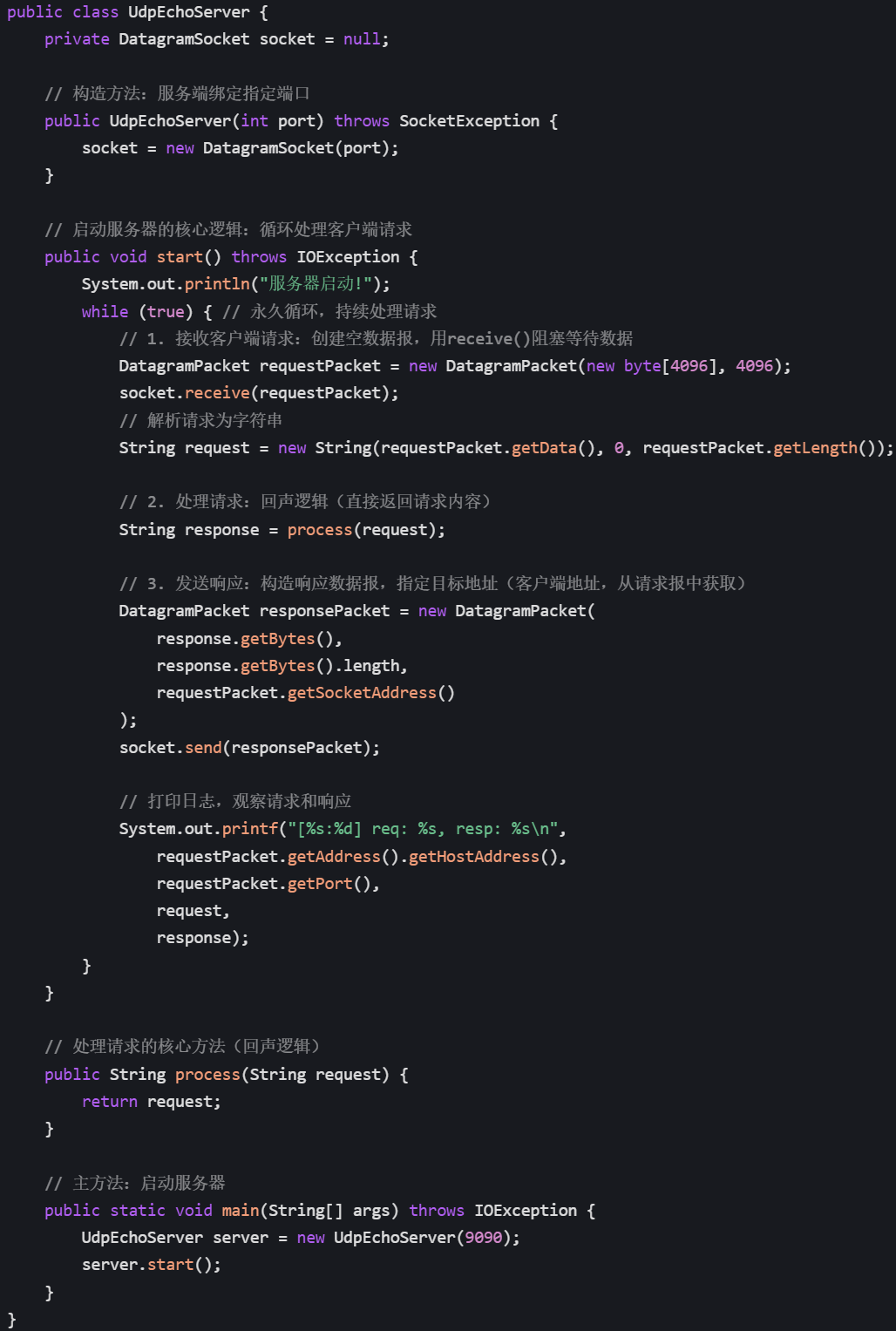 DatagramSocket接收 UDP 数据时,会把数据存入DatagramPacket,你可以从这个对象中读取接收到的字节数据,以及数据的来源地址 / 端口。