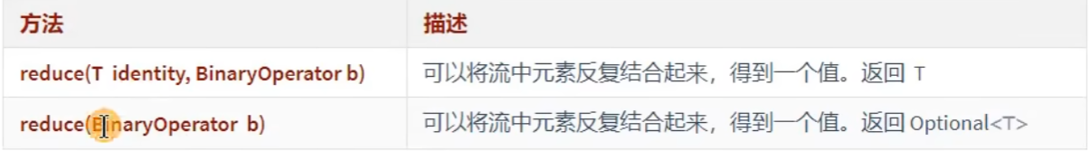 //reduce(BinaryOperator):可以将流当中元素反复结合起来,得到一个值,返回Optional<T>