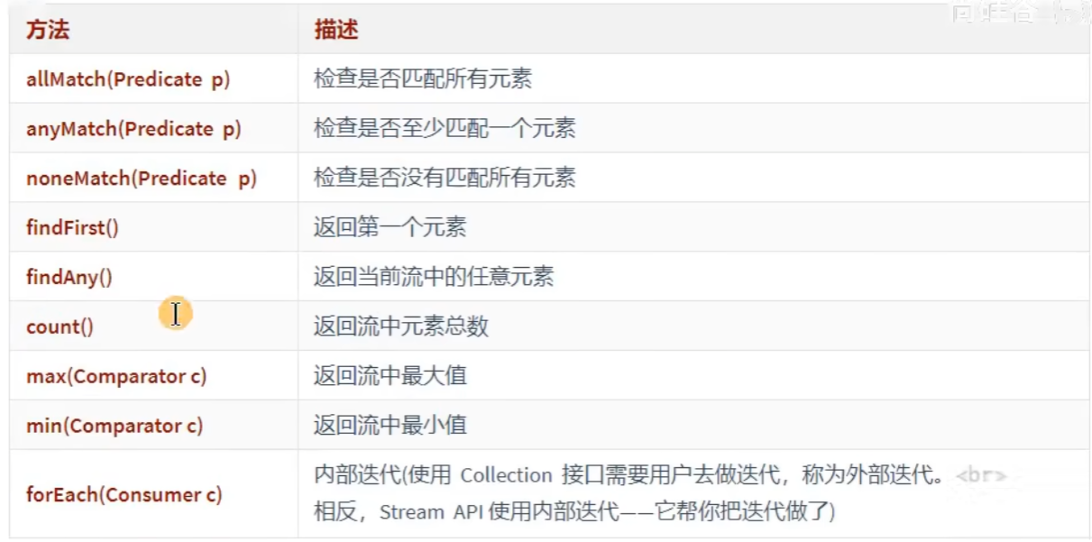 终端操作会从流的流水线生成结果。结果可以是任何不是流的值,例如:List、Integer、甚至是void
