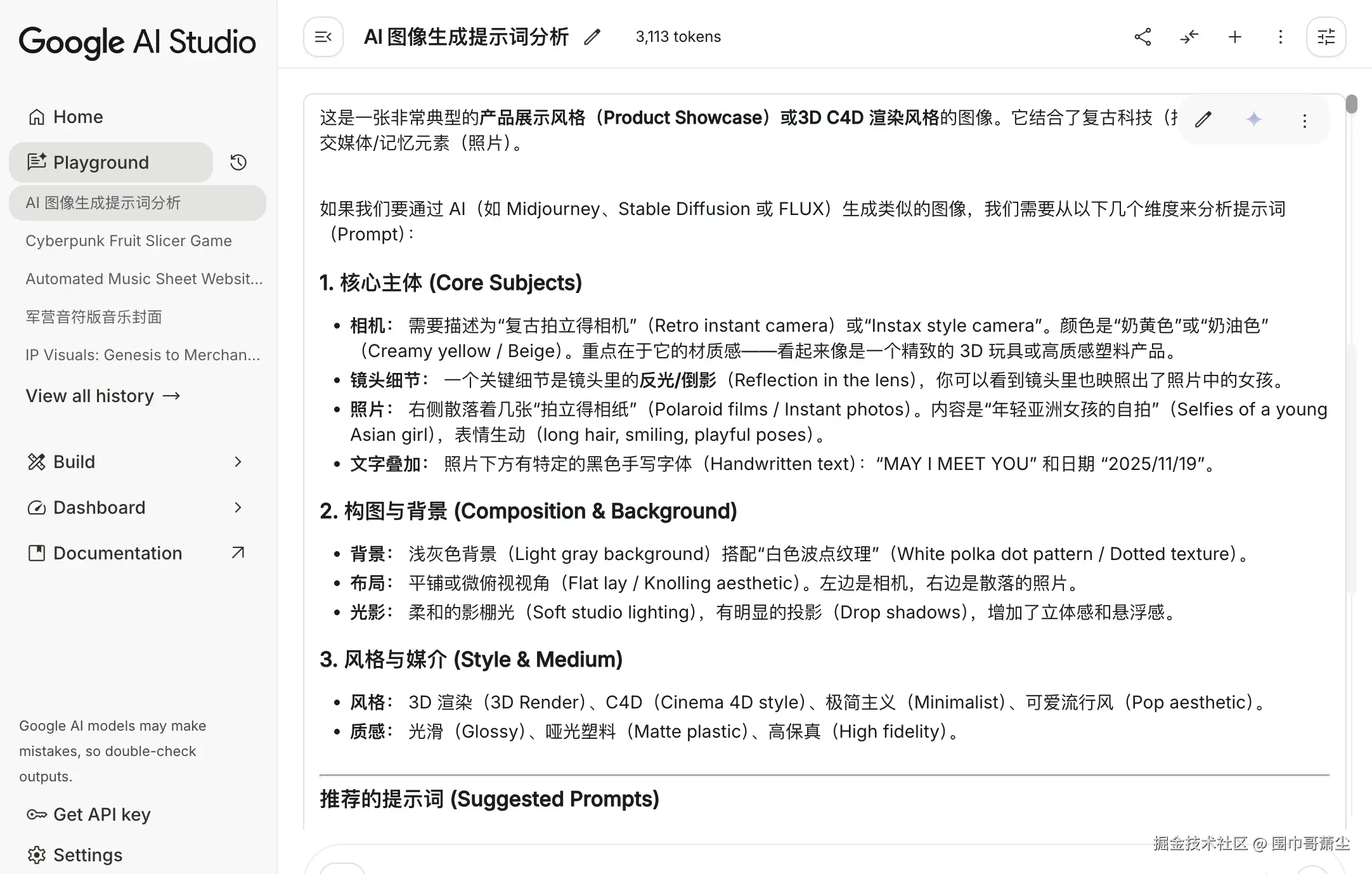 借助外部工具: 当初始效果不满意时,应重新制作和优化提示。我一般下都是借助 Google Gemini 来生成一段更精细、更准确的提示,以此来优化界面。