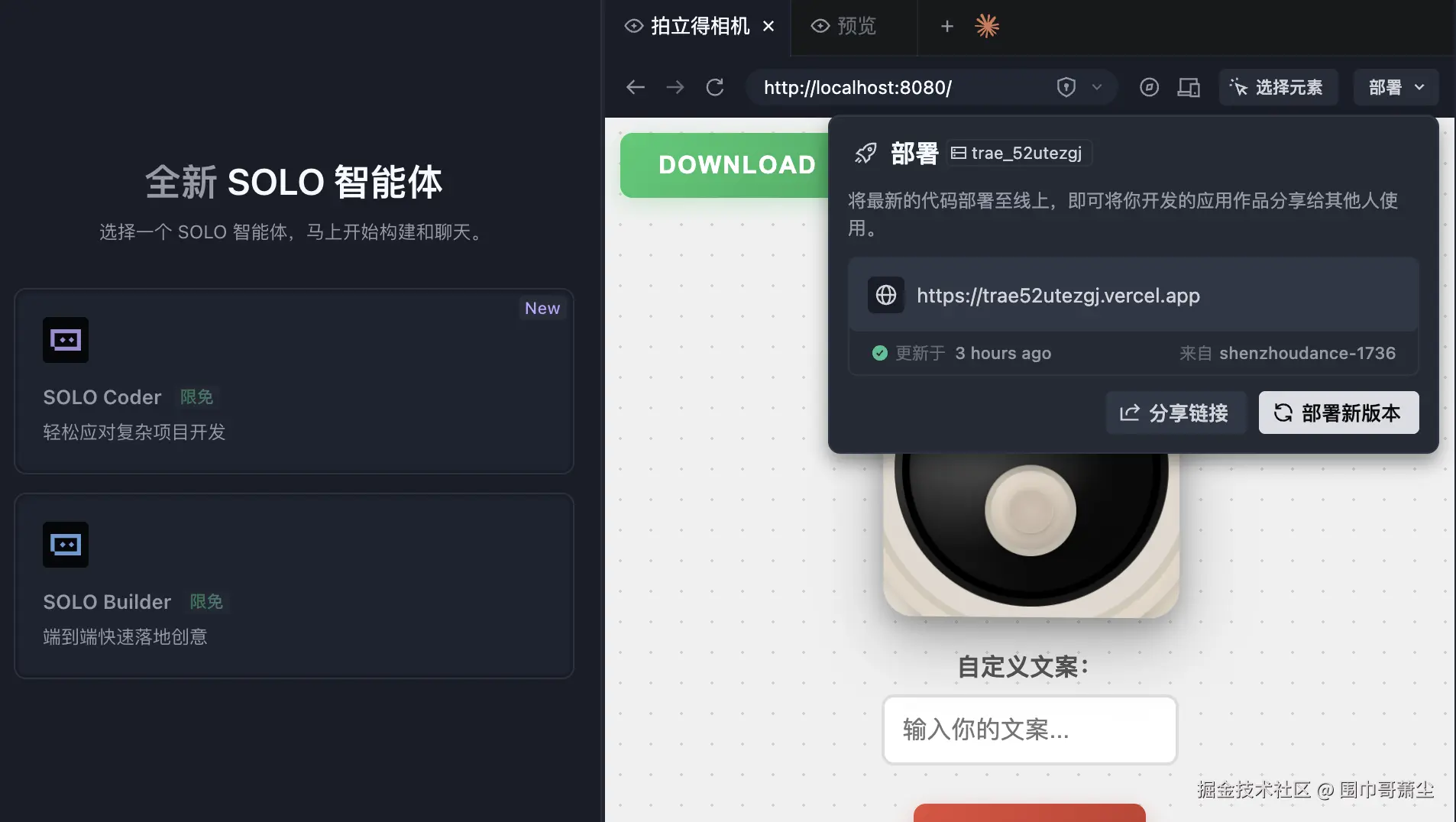🚀TRAE SOLO 实战干货:从零到一部署国内版"拍立得"应用的踩坑避坑指南🧣