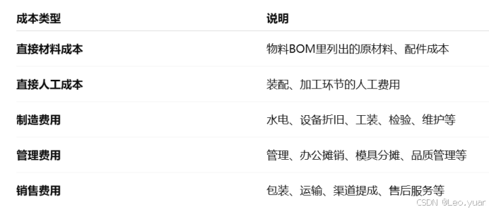 根据成本类型,可以划分以下几个方面: