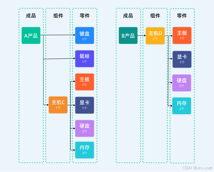 比如生产一批电脑,BOM中会写清楚需要多少个硬盘、多少个内存卡、主板型号是什么,如果BOM中漏了一个螺丝,可能整条产线都要停摆。