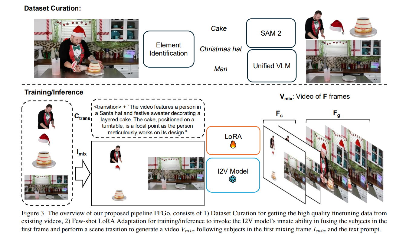 亮点:颠覆传统认知,揭示视频生成模型中第一帧的核心作用------并非仅作为时空起始种子,而是存储视觉实体供后续复用的"概念性记忆缓冲器";提出无需修改模型架构、无需大规模微调的视频内容定制方案,仅需20-50个训练样本即可实现多场景下的稳健通用定制;挖掘了视频生成模型在参考基视频定制任务中被忽视的强大潜力,为低成本视频内容个性化提供新范式。