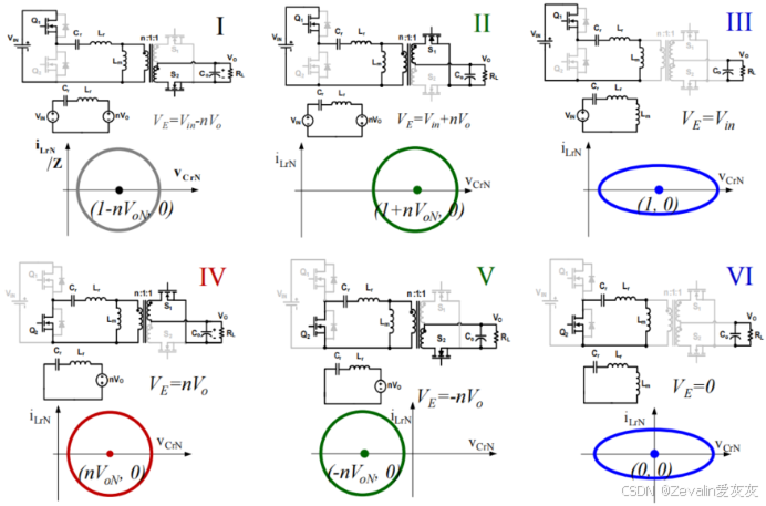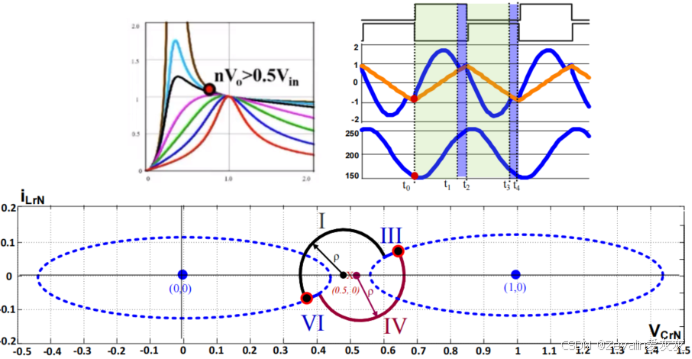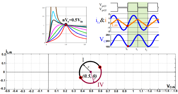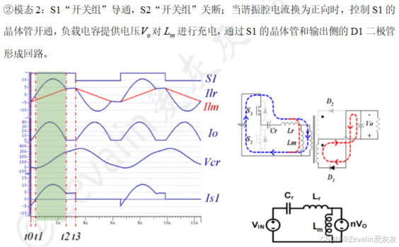 (2)使LLC谐振变换器工作在区间2,同样地,仅介绍前三个模态的状态轨迹。