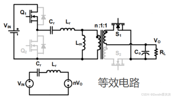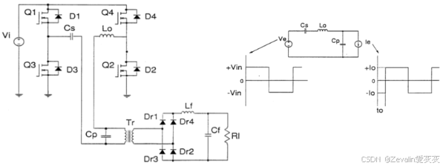(1)下图所示的是串并联谐振变换器的电路图及等效电路图,其中在大电感条件下,负载侧可等效为一个直流电流源。
